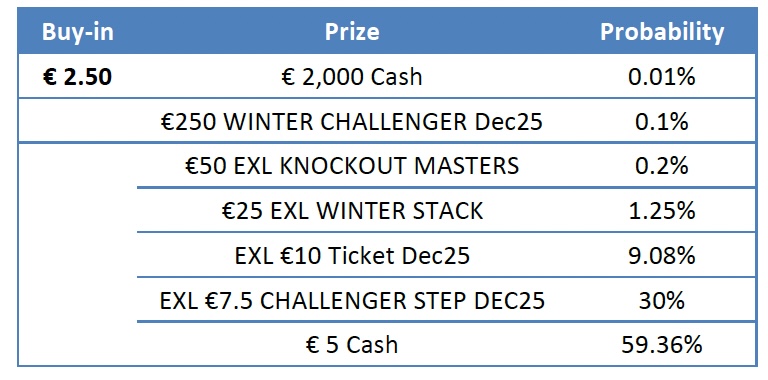 - The “EXL €2.50 Twister Dec25” entry tickets can be used for €2.50 buy-in “EXL €2.50