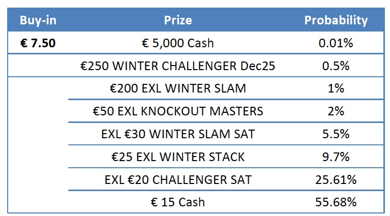 - The “€200 WINTER SLAM” entry tickets won can be used for the €200 buy-in “EXL|€100,000 WINTER SLAM“ tournament.