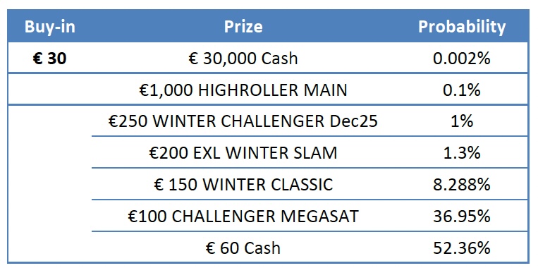 - The “€250 WINTER CHALLENGER Dec25” entry tickets won can be used for the €250 buy-in “EXL|€400,000 CHALLENGER|D1“ tournaments.